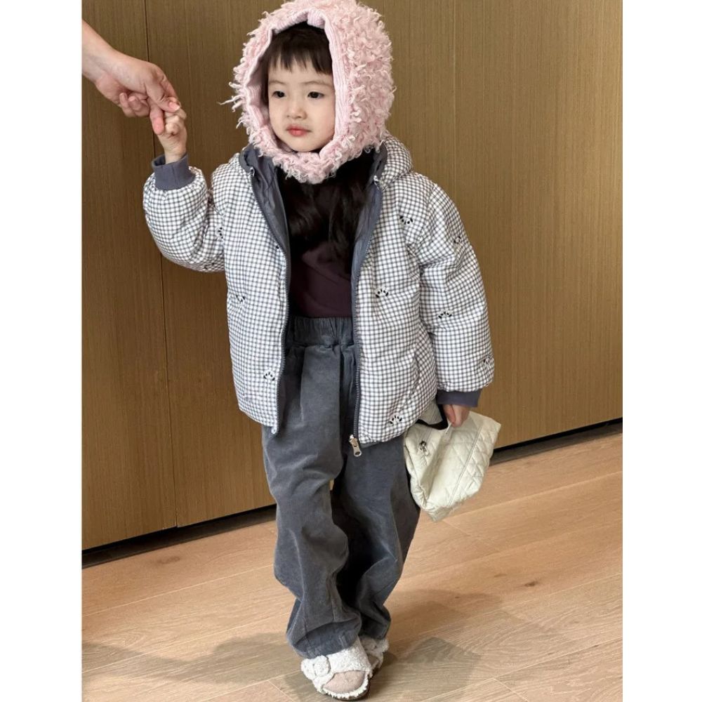 Het omkeerbare donsjack in panda- of dino-ruit voor kinderen combineert stijl en warmte. Met speelse dinosaurus- of pandamotieven biedt het een effen kant voor meer soberheid. Elastische manchetten en een ritssluiting garanderen comfort en bescherming tegen de kou. Perfect voor de winter!
