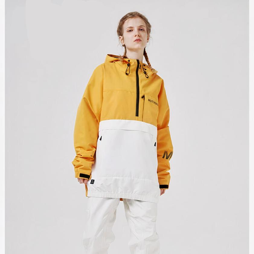 Met een stijlvolle snit en uitstekende bescherming tegen de elementen is deze gele dames ski-jas de perfecte aanvulling op uw wintergarderobe. Hij is gemaakt van waterdicht, ademend materiaal en biedt warmte en optimaal comfort, terwijl hij licht blijft voor maximale bewegingsvrijheid. Hij glijdt over het hoofd voor optimale bescherming tegen de wind.