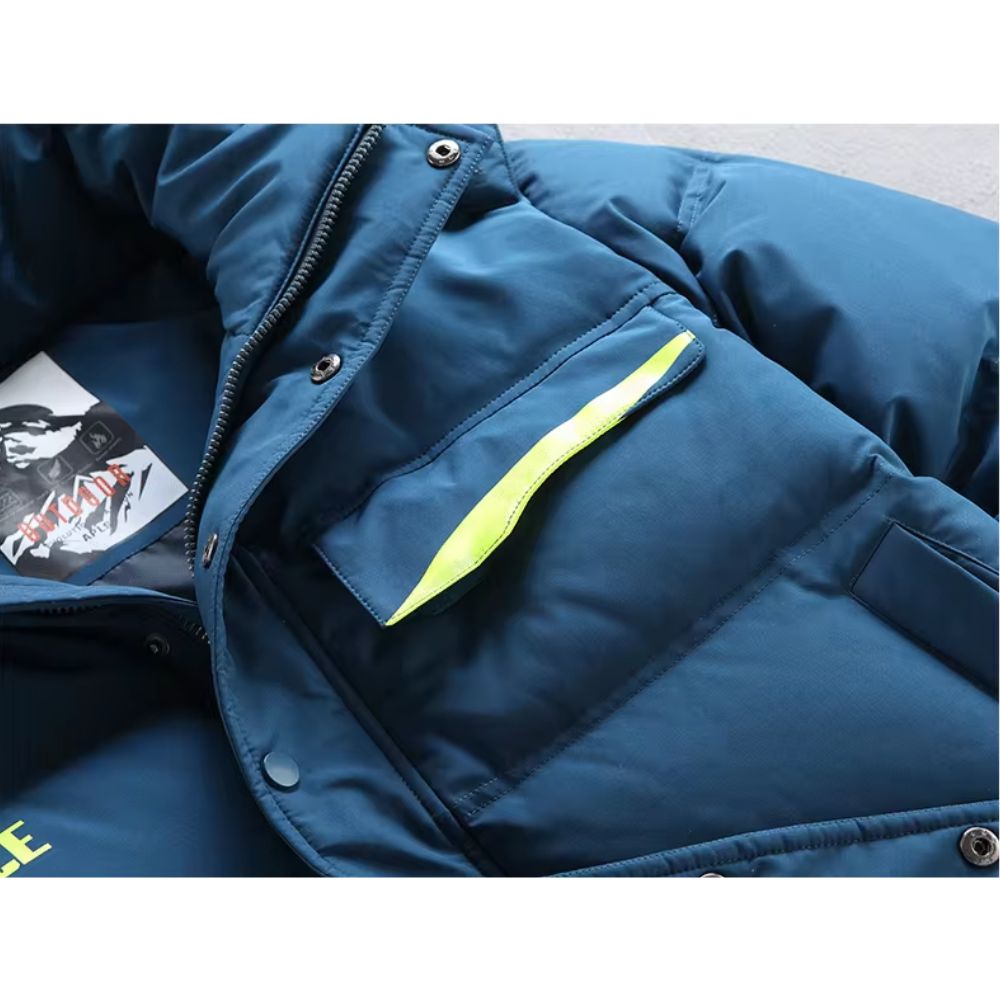 Deze blauwe donsjas is speciaal ontworpen voor skiën, met ademende stof en een buitenkant die u beschermt tegen wind en vocht, en u tegelijkertijd beschermt tegen de kou in ijzige omstandigheden. Dankzij de getapete naden kunt u met deze blauwe donsjas allerlei winterse activiteiten ondernemen zonder bang te hoeven zijn of in te boeten aan stijl en bescherming.