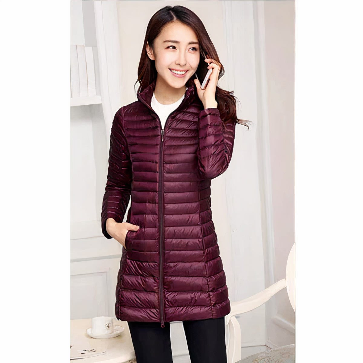 Onze doorgestikte bordeauxrode donsjas voor dames is een must-have voor uw wintergarderobe! Hij heeft een ritssluiting aan de voorkant en twee zijzakken, perfect om uw sleutels of telefoon in op te bergen. De manchetten zijn elastisch om de donsjas op zijn plaats te houden, en de opstaande kraag beschermt uw nek tegen de kou. Door het lange model is deze jas perfect om te dragen met skinny jeans of leggings, en hij past gemakkelijk bij elke kleur!
