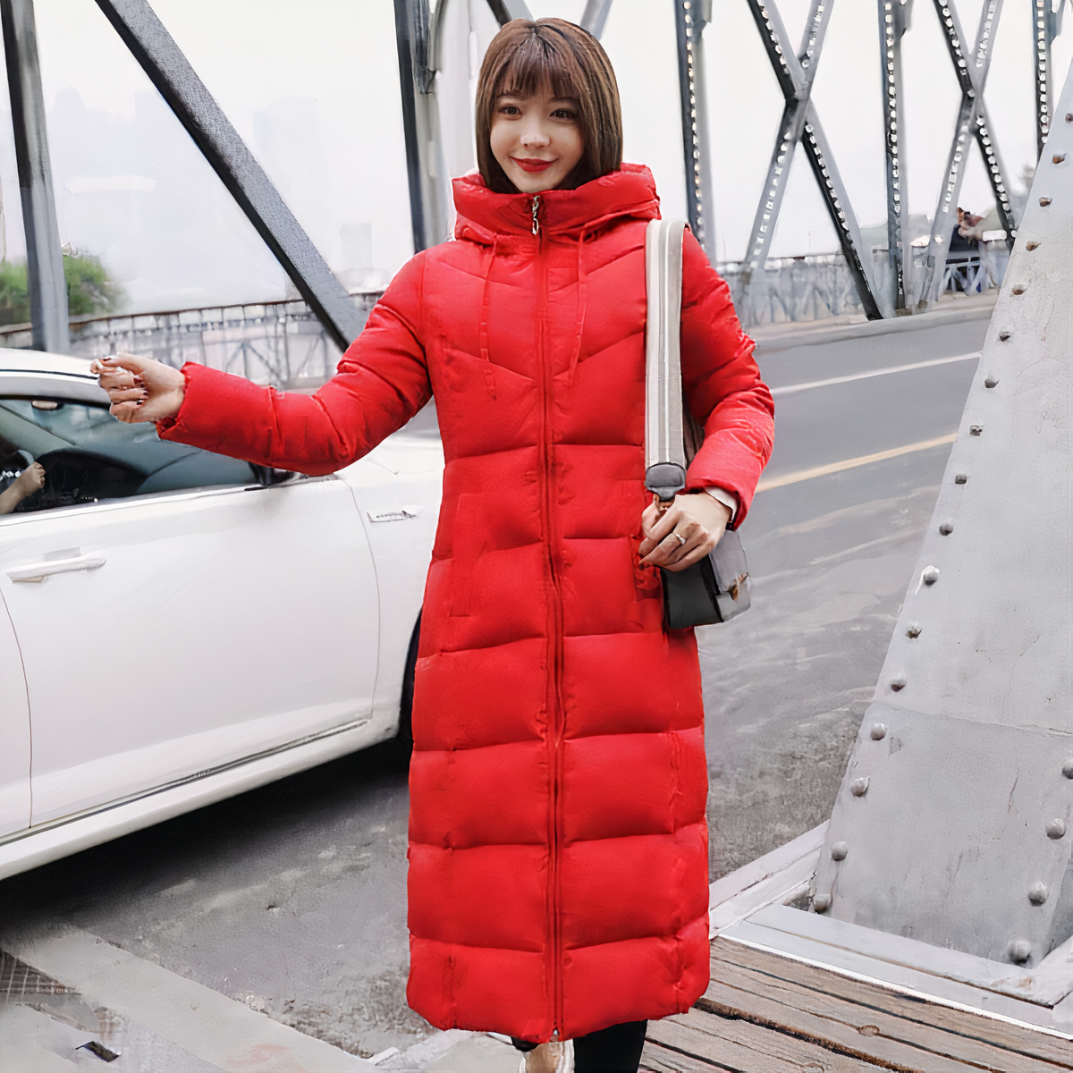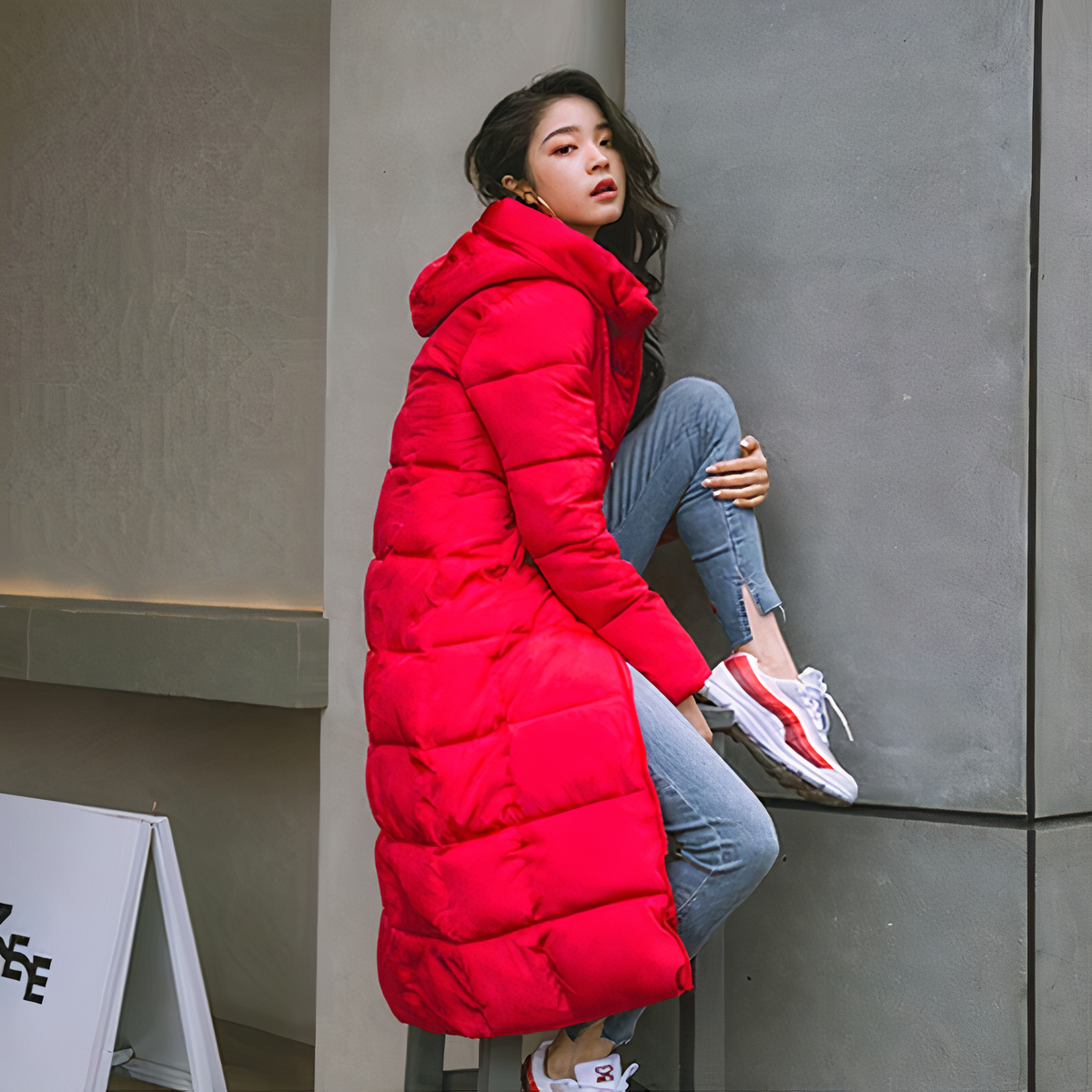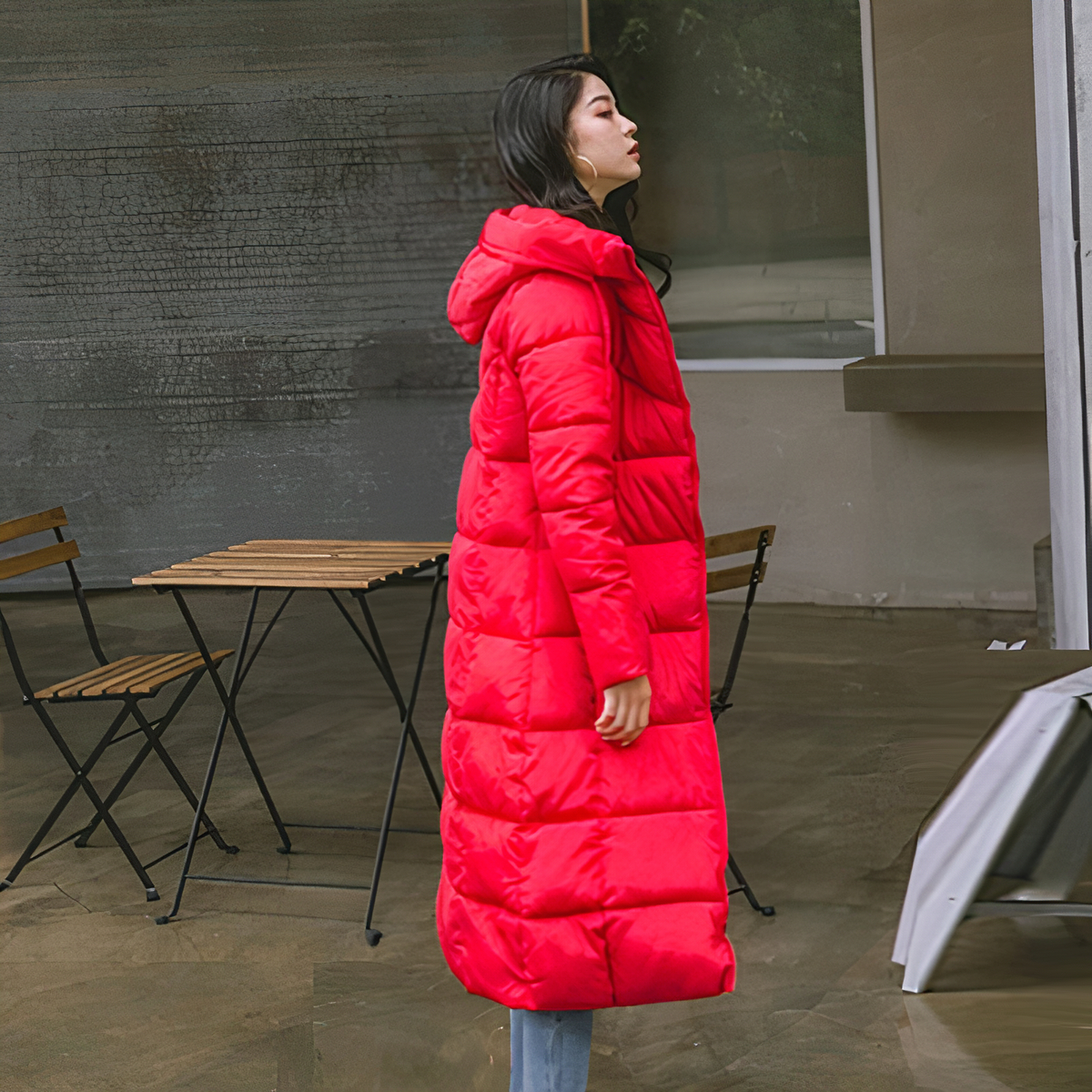 Deze lange, gewatteerde rode donsjas is meer dan zomaar een jas – het is een stijlstatement. De lange, elegante snit biedt een geraffineerd silhouet en zorgt tegelijkertijd voor optimale bescherming tegen de kou. Het levendige rood is meteen een blikvanger, zodat u zich zelfverzekerd kunt onderscheiden. Deze donsjas is perfect voor winterse dagen en combineert moderne esthetiek met functionaliteit, ideaal voor wie stijl niet wil opofferen voor comfort.