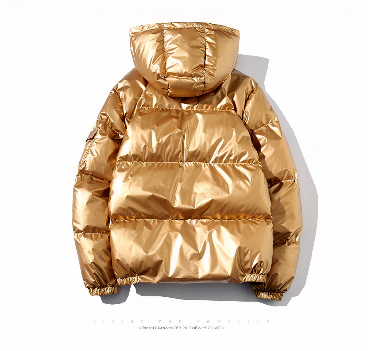 Wat stijl betreft, zal het glanzende, gewatteerde donsjack uw look oogverblindend maken en u zult zeker niet onopgemerkt blijven. Het is verkrijgbaar in goud of zwart, zodat het perfect past bij alle wintertinten in onze garderobe.