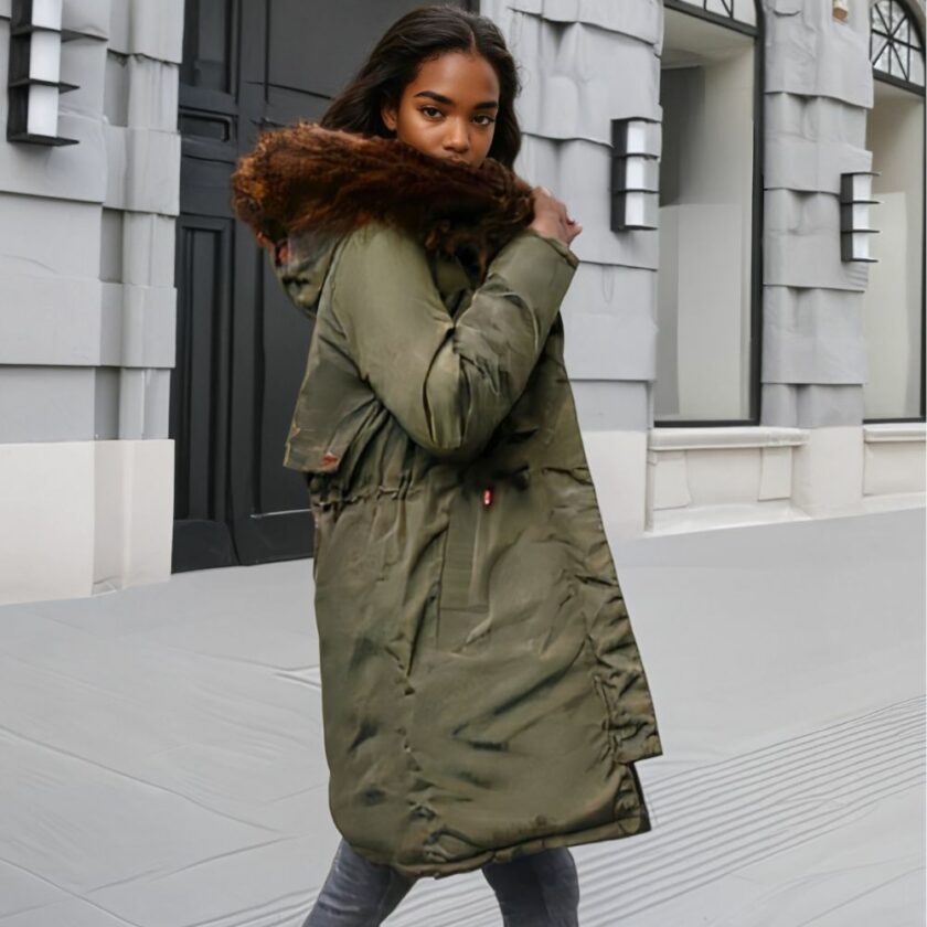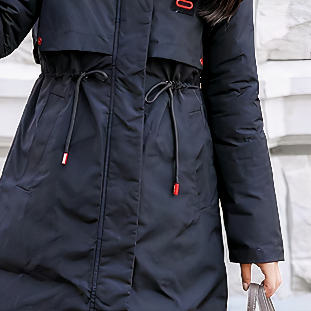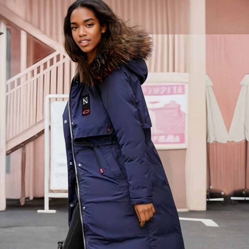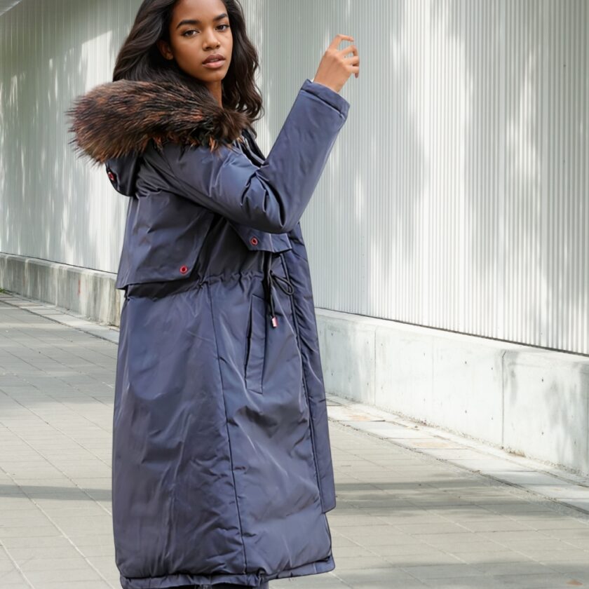 De kraag kan omgeslagen worden voor extra warmte. De mouwen zijn verstelbaar dankzij de geribde manchetten. Met een trekkoord kunt u het donsjack aantrekken voor een trendy look.