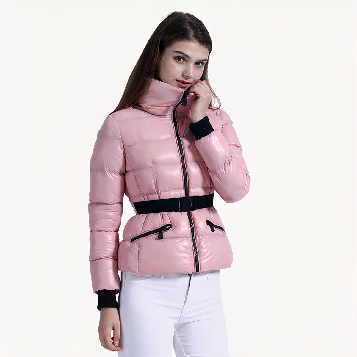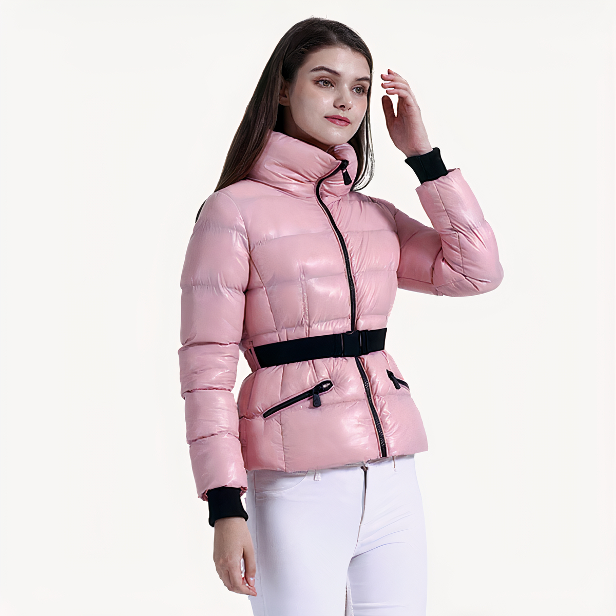Het roze donsjack met riem voor dames is ideaal voor het herfst- en winterseizoen, wanneer de temperaturen wat kouder zijn. Het beschermt u tegen de kou en zorgt tegelijkertijd voor een elegante stijl, dankzij de zwarte riem. De korte, slanke pasvorm geeft u een vrouwelijke look terwijl het u warm houdt.