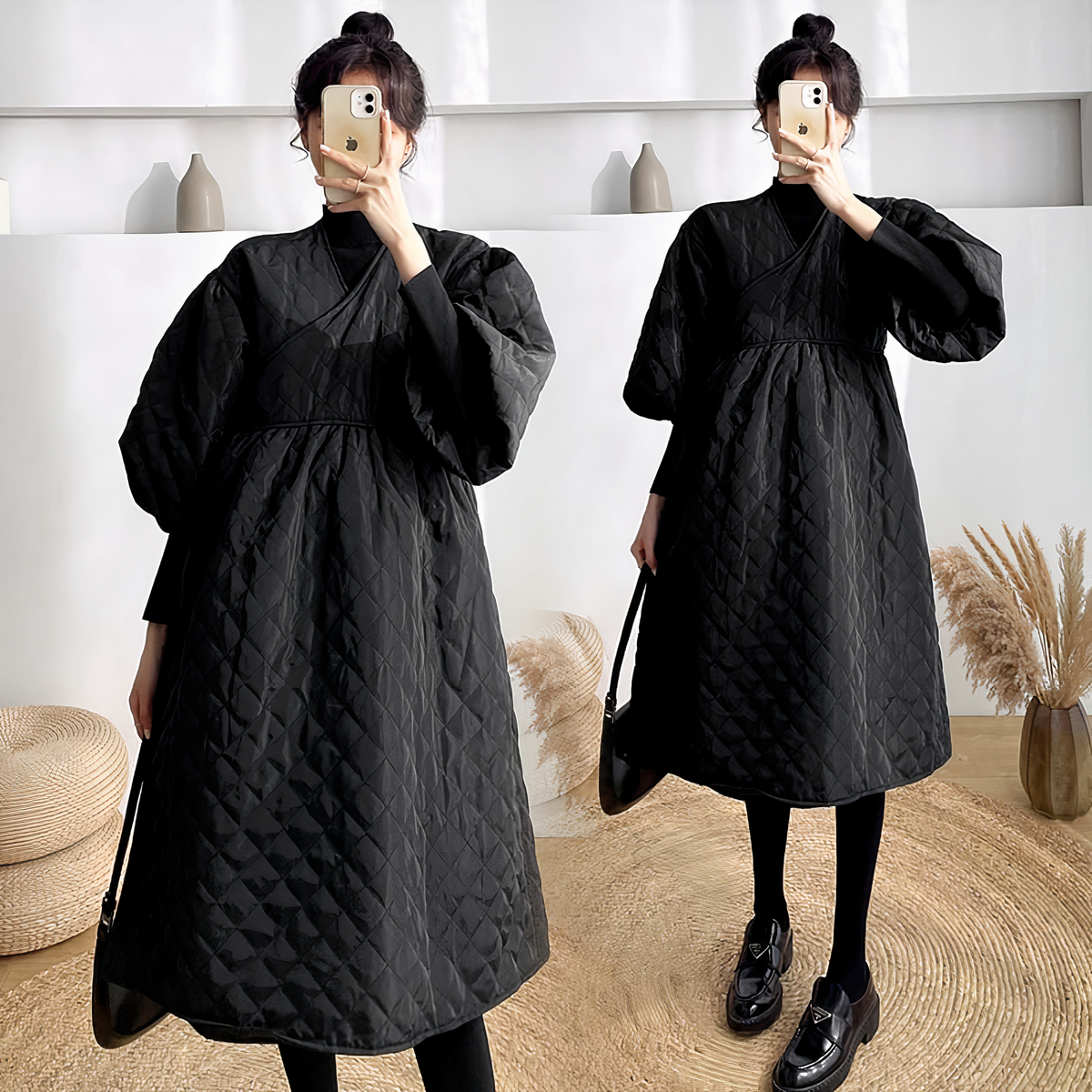 Krijg het niet meer koud terwijl u op uw baby wacht! Hier is het glamoureuze zwarte zwangerschapsdonsjack voor aanstaande moeders die het stijlvol en warm willen hebben. Dit ruime donsjack is comfortabel voor koude dagen en past zich aan uw figuur aan dankzij de geïntegreerde bandjes aan de zijkanten.
