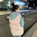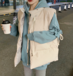 Ons beige donsjack zonder mouwen voor zwangerschapszwangerschap is chique en trendy. Als u een aanstaande moeder bent en zich toch in stijl wilt kleden, waarom kiest u dan niet voor dit trendy, comfortabele beige model? Het donsjack is gemakkelijk te dragen met jeans of een rok en zal u warm en comfortabel houden.