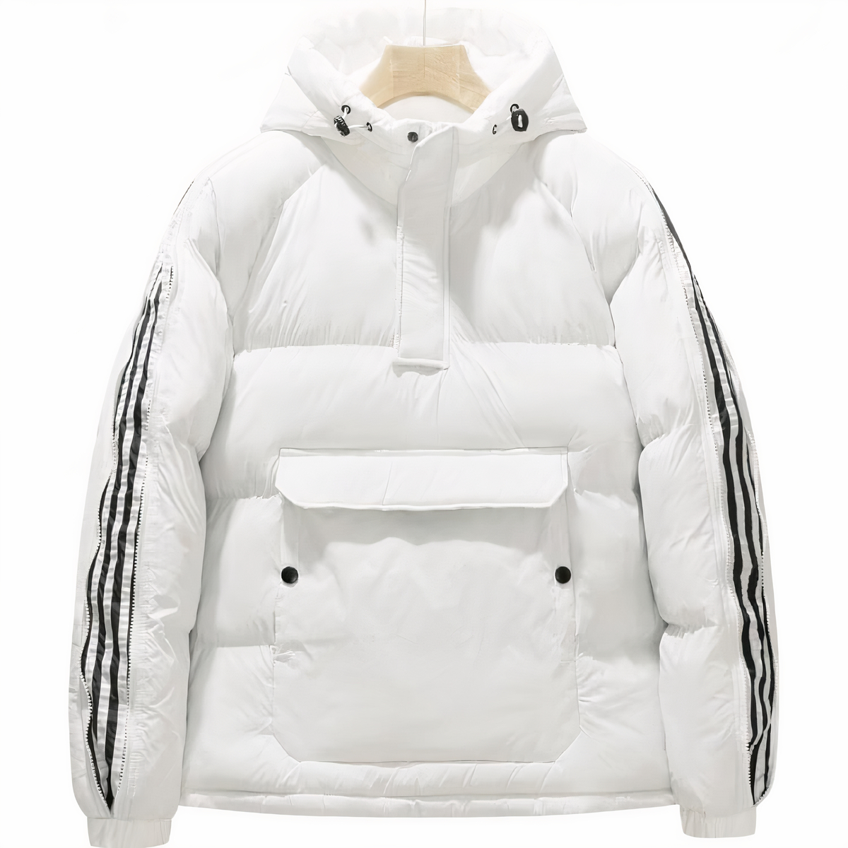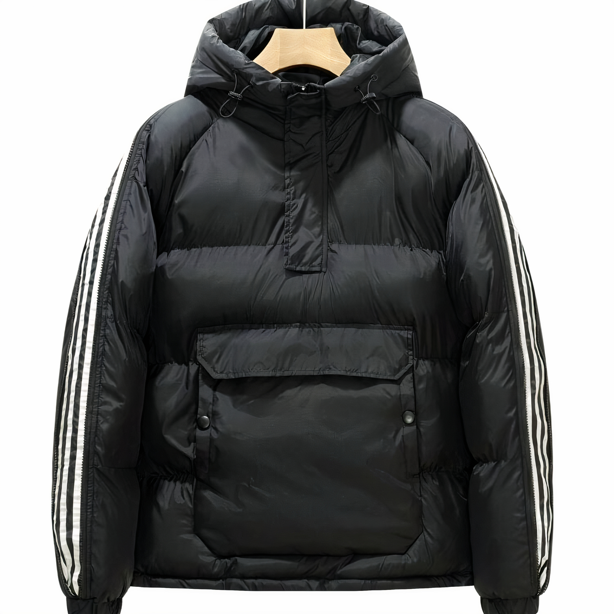 Onze gewatteerde donsjas voor heren is een warme en comfortabele jas, ideaal voor koude dagen. Hij heeft een hoge kraag om u tegen de kou te beschermen, en kan met de ritssluiting versteld worden. Deze donsjas is perfect voor buitenactiviteiten, zodat u zich vrij kunt bewegen dankzij de losse pasvorm, terwijl hij u tegen de kou beschermt.