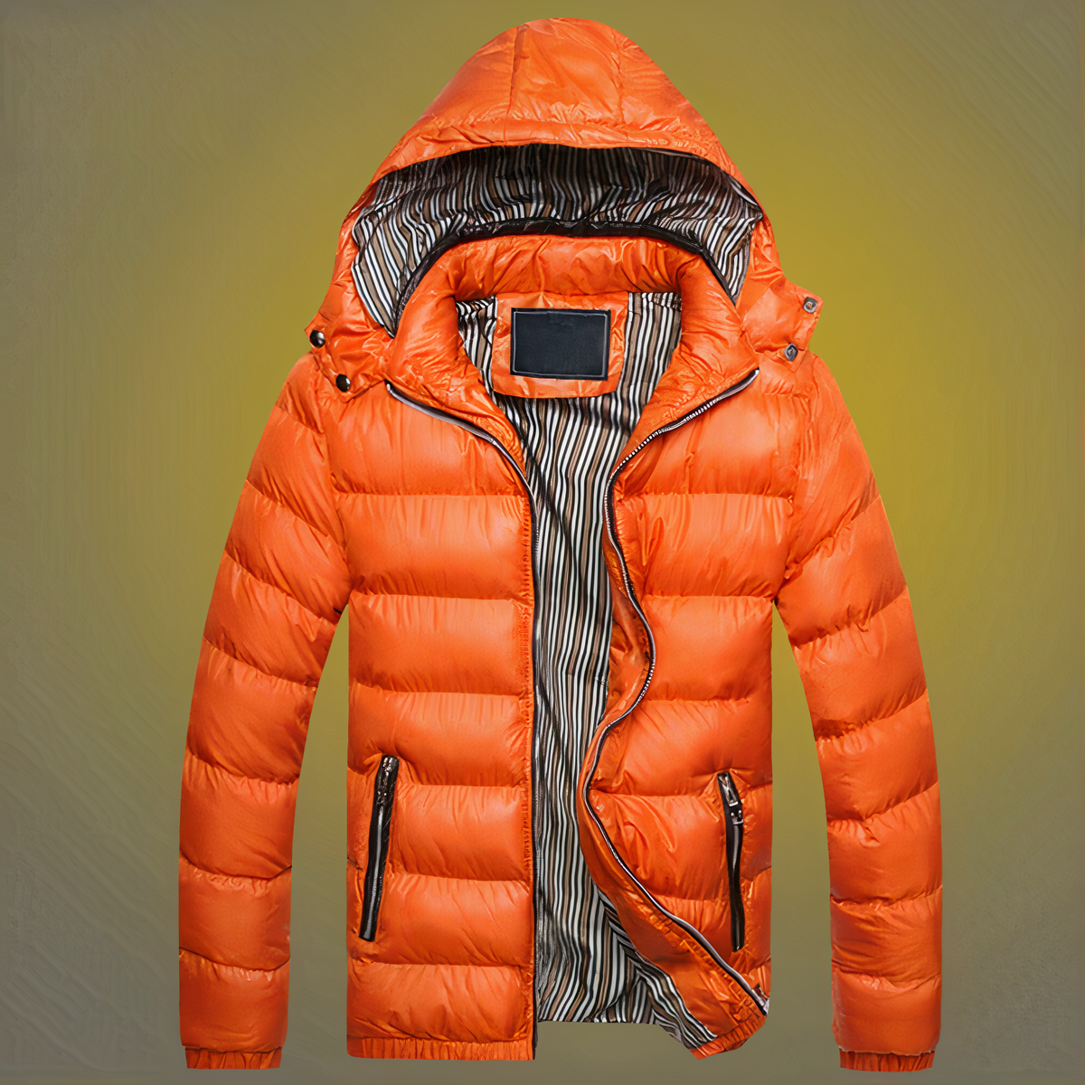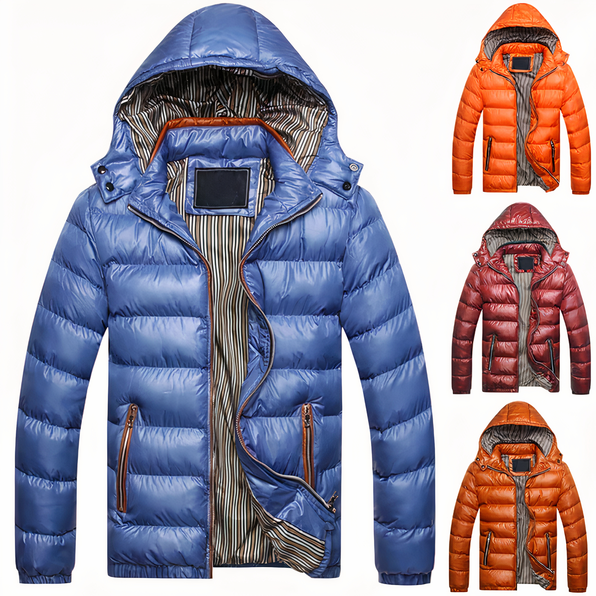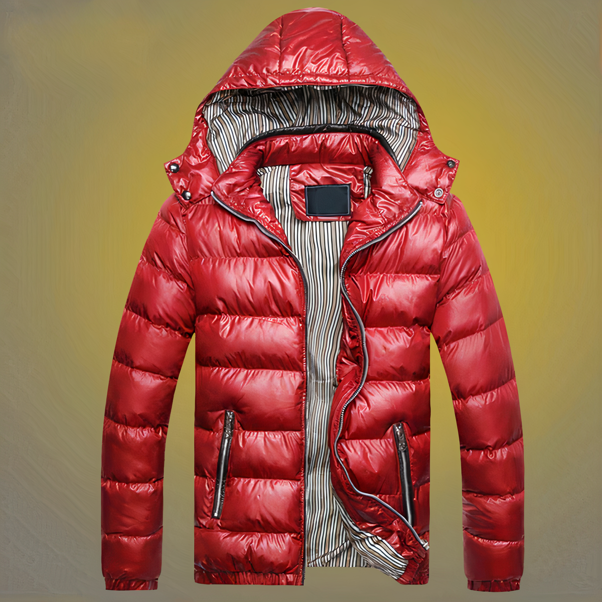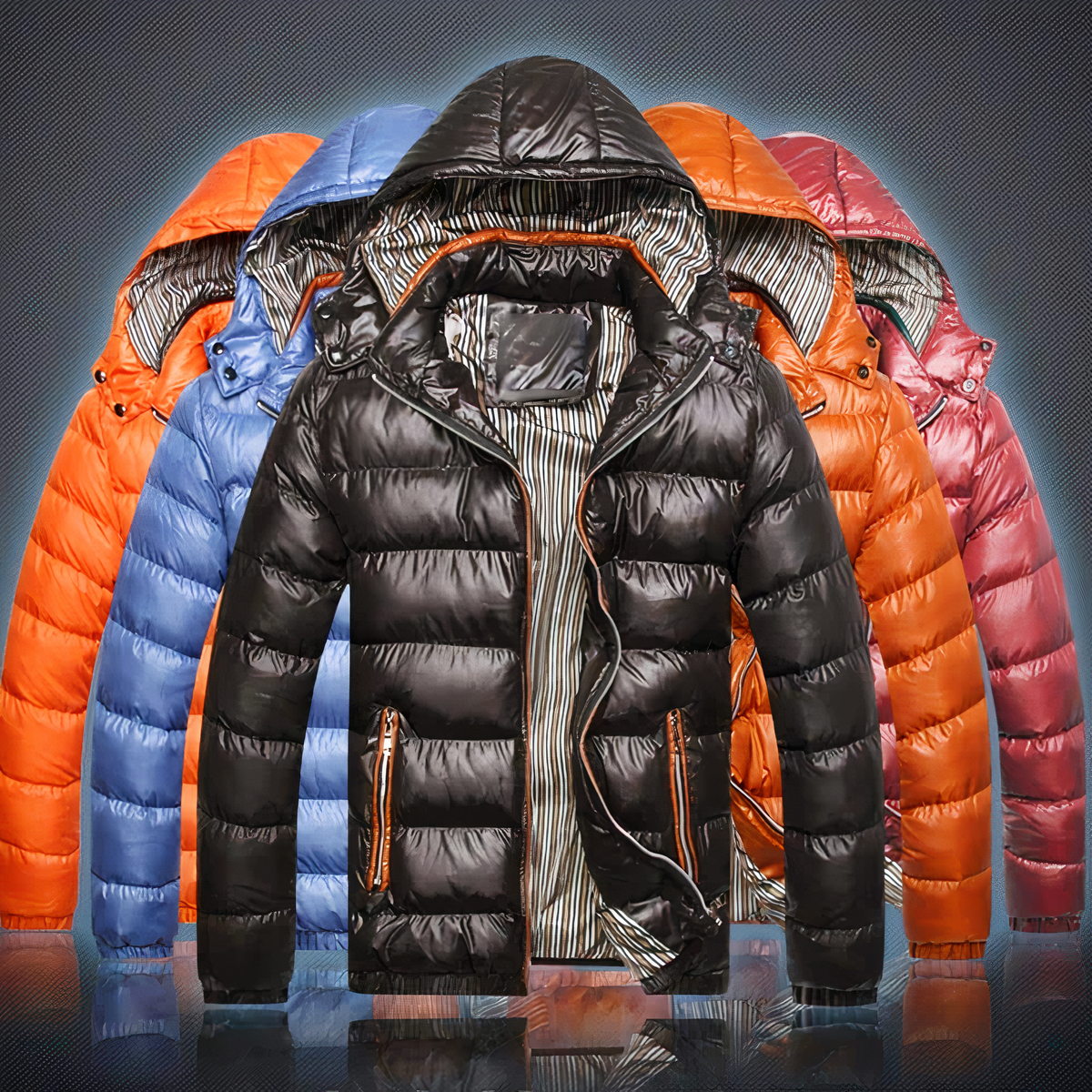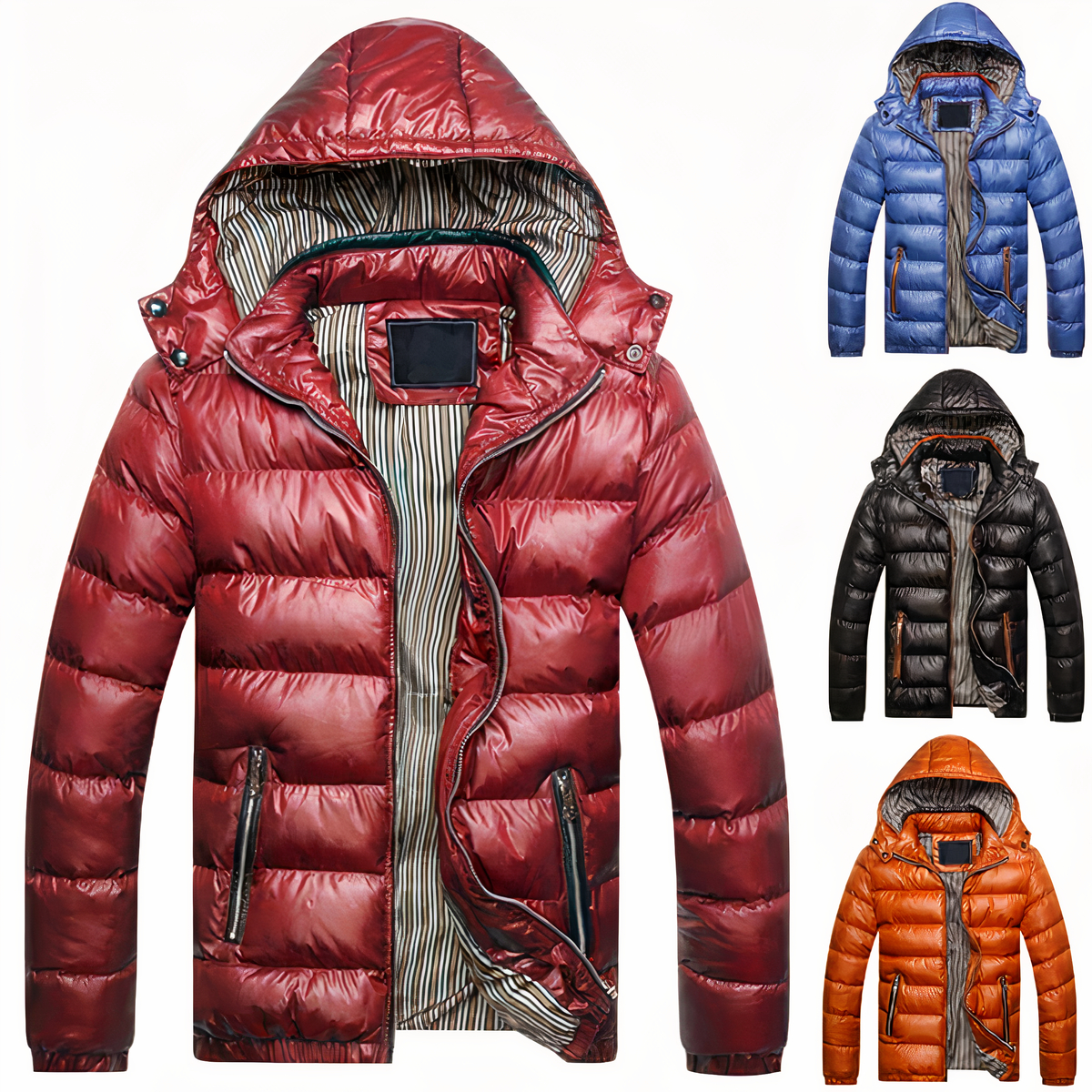 Dit glanzende gewatteerde donsjack voor heren met capuchon en zijn stijlvolle look is perfect om u tegen de kou te beschermen. De capuchon houdt u warm en droog, terwijl de slanke pasvorm uw look voor de dag afmaakt. De zakken bieden praktische opbergruimte voor uw kleine spullen.