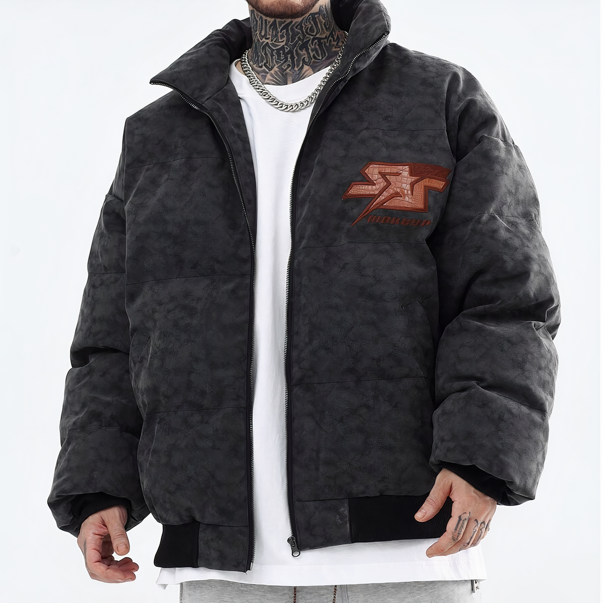 Deze grote, gewatteerde donsjas voor heren is ideaal voor koud winterweer. Dankzij de snit kunt u er dikkere kleding onder dragen, terwijl de gewatteerde laag u warm houdt. De ritssluiting aan de voorkant helpt u om uw lichaamstemperatuur te regelen.
