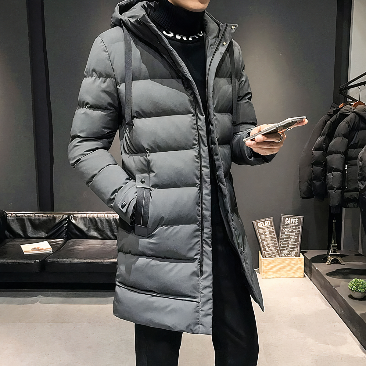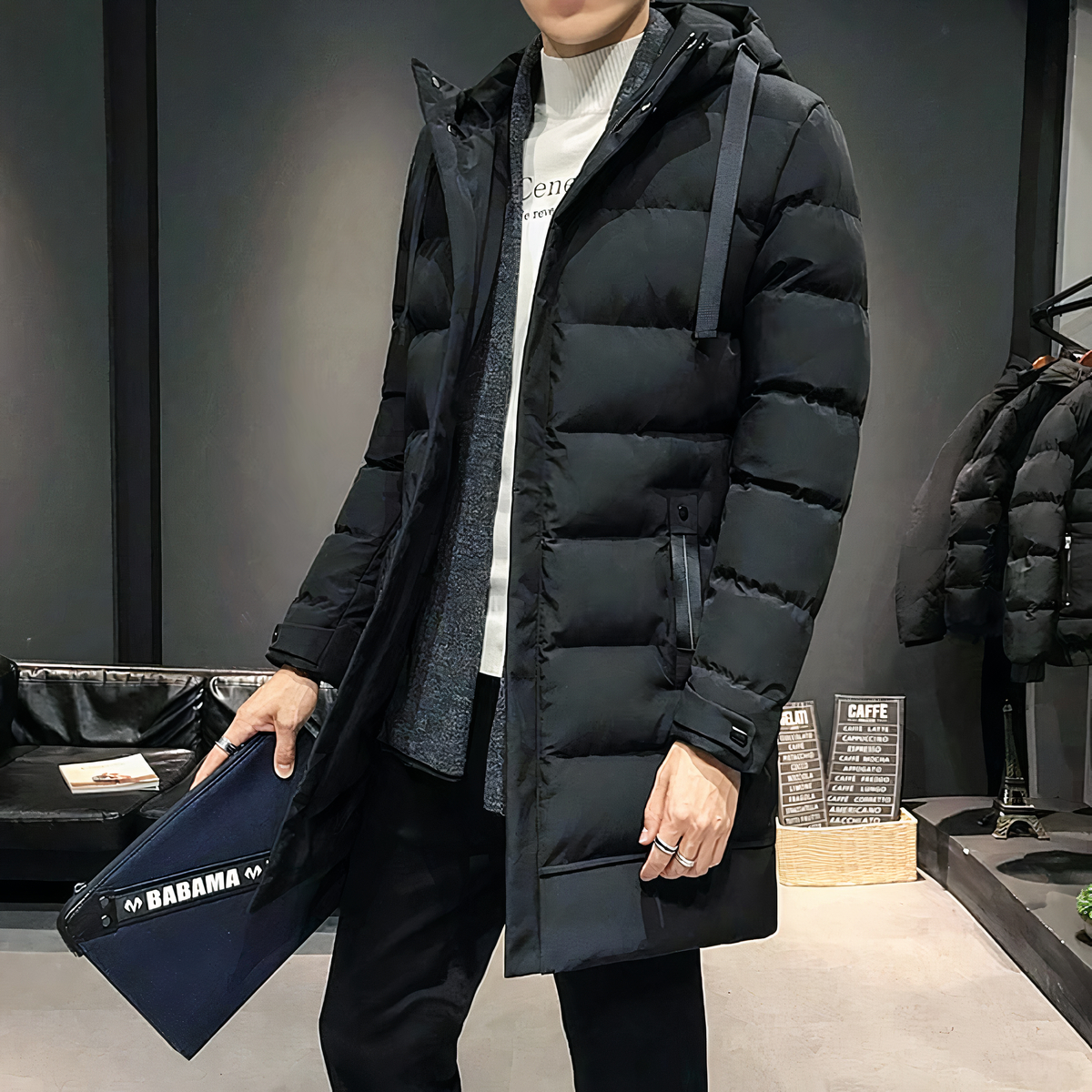 Dit mooie, lange, gewatteerde donsjack voor heren is perfect voor mannen die warm en droog willen blijven en er tegelijkertijd stijlvol uit willen zien. Ons donsjack is gemaakt van een waterdichte, ademende stof die u zelfs bij inspannende sporten comfortabel houdt, plus het is gewatteerd voor uitstekende warmte-isolatie.
