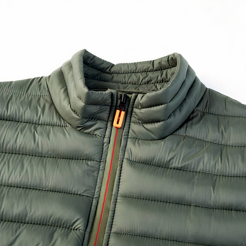 Ons kaki groene katoenen gewatteerde mouwloze donsjack voor heren is een must-have voor de herengarderobe dit seizoen, met een casual maar sportieve look die u comfortabel en stijlvol tegelijk houdt. Het mouwloze ontwerp geeft u totale bewegingsvrijheid, waardoor het praktisch is voor mannen die graag van allerlei buitenactiviteiten genieten zonder zich benauwd te voelen.
