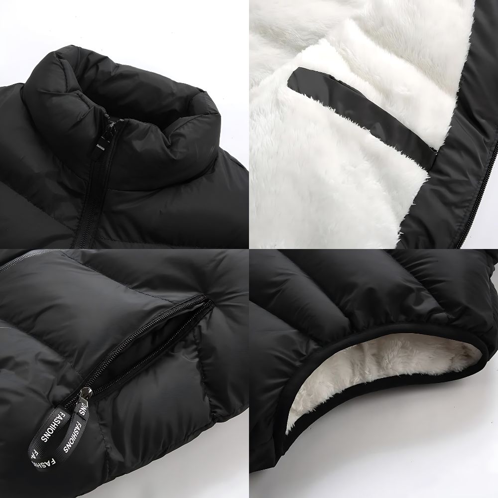 Als u onderweg bent, gaat dit donsjack zonder mouwen overal met u mee. De royale vulling zorgt ervoor dat u het altijd warm hebt, zelfs als de temperatuur daalt, en de hoge kraag omsluit uw nek voor extra bescherming tegen de wind. Perfect voor lange wandelingen in het bos of wandelingen door de stad, het houdt u warm zonder u ooit te belasten. Het is de ideale metgezel voor degenen die graag opnieuw contact maken met de natuur zonder aan comfort in te boeten.