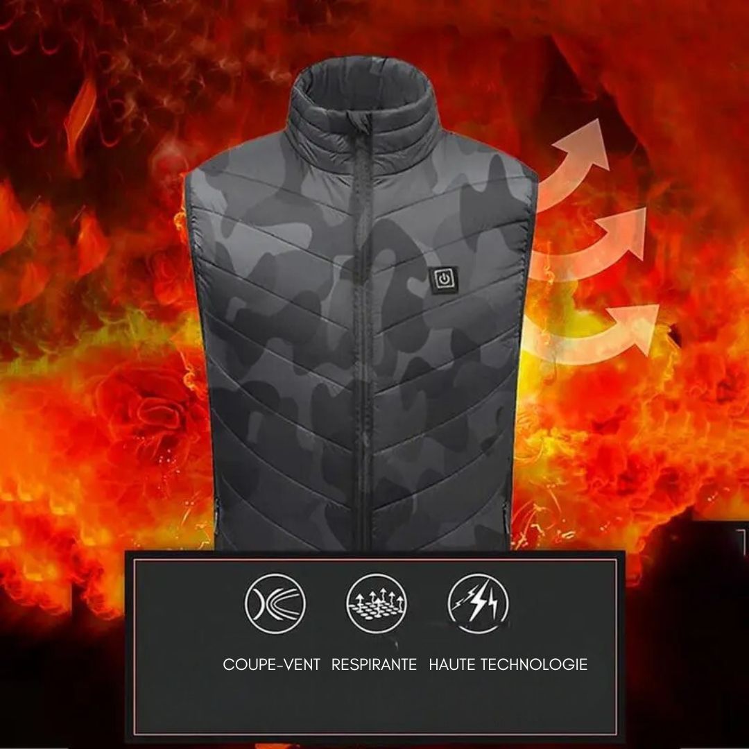 Ontdek ons verwarmde mouwloze donsjack, een must-have voor deze winter. Met zijn moderne camouflagepatroon en mouwloze ontwerp combineert dit donsjack stijl en functionaliteit. De inschakeling van de verwarming en de temperatuurregeling met één druk op de knop op de borst garanderen onmiddellijke en precieze warmte. Deze geavanceerde technologie zorgt voor behaaglijke warmte zonder risico op verbranden, en biedt een veilige en comfortabele draagervaring.