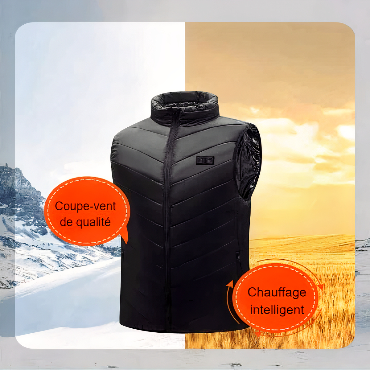 Ontdek de unieke eigenschappen van ons verwarmd mouwloos donsjack. Dit stuk wordt de essentiële bondgenoot voor uw kille dagen en biedt persoonlijke warmte waar u die het meest nodig hebt. Comfortabel, zacht en sober elegant, het laat u de kou in stijl trotseren. Geniet dus de hele winter van ons ongelooflijke donsjack!