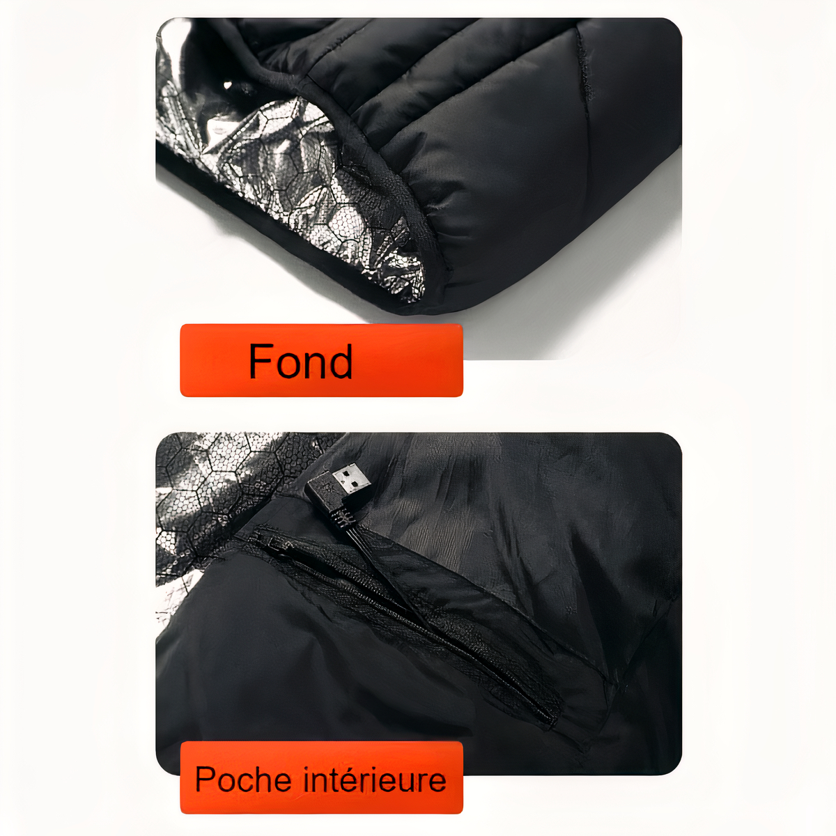 Ons verwarmde donsjack is perfect voor u deze winter! U kunt het op zichzelf dragen of als extra laag onder een jas of jack, voor extra warmte-isolatie. U kunt de temperatuur aanpassen aan uw voorkeuren dankzij de verschillende beschikbare warmteniveaus. Of u nu zachte warmte nodig hebt voor een wandeling in de frisse lucht of intense warmte om vriestemperaturen te trotseren, dit donsjack past zich aan uw behoeften aan.