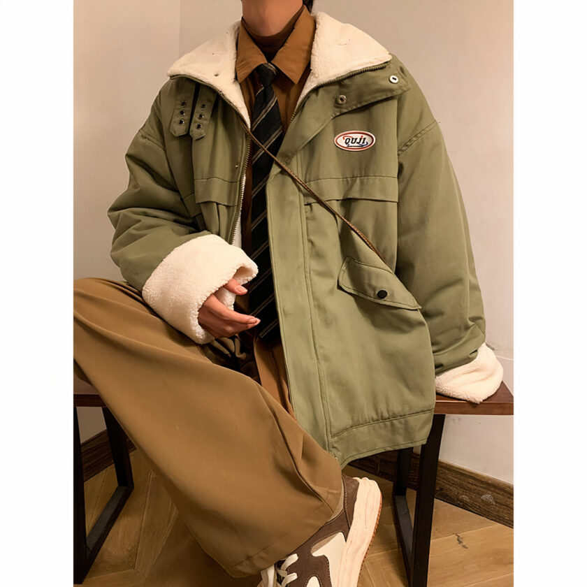 Deze vintage Japanse donsjas voor heren is een eenvoudige, monochrome jas ontworpen met de stijl van de Japanse strijdkrachten in gedachten. Gemaakt van een lichtgewicht maar slijtvaste stof, biedt dit comfortabele stuk de bescherming die u nodig heeft tegen de elementen. De losse pasvorm geeft een casual, tijdloze stijl, en het heeft een opstaande kraag om uw nek tegen de wind te beschermen, terwijl het opvallende ontwerp de stijl benadrukt die geïnspireerd is door Japanse militaire tradities.