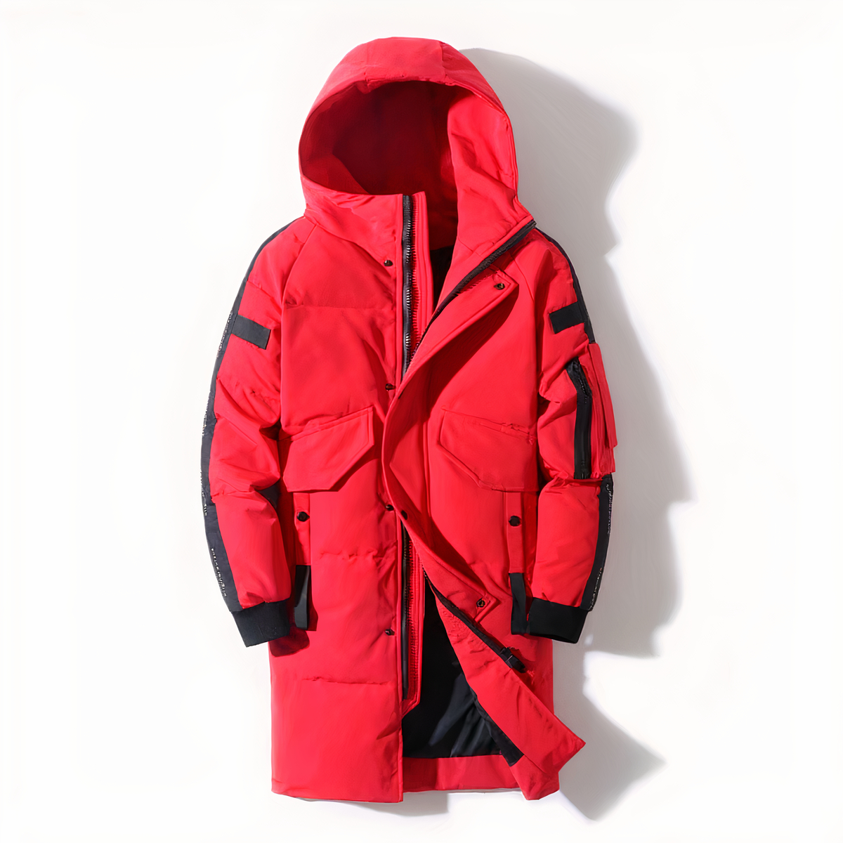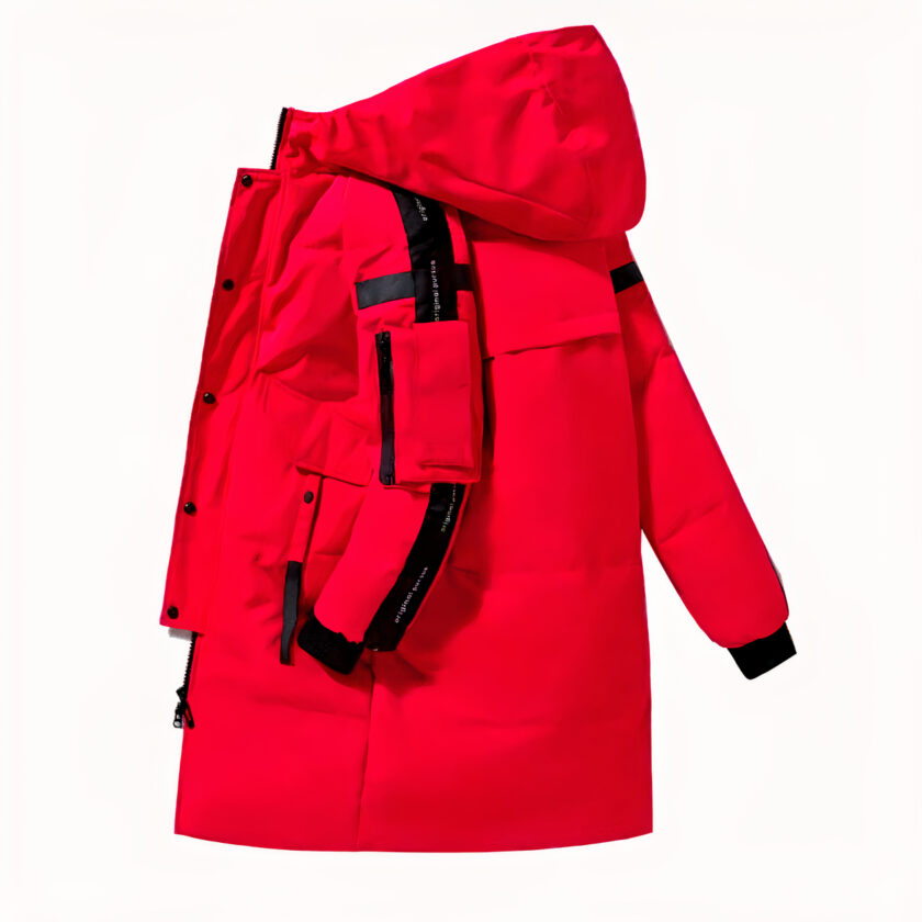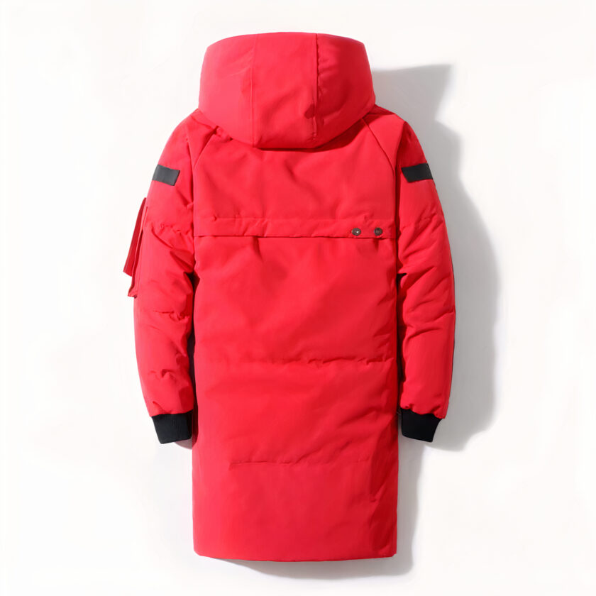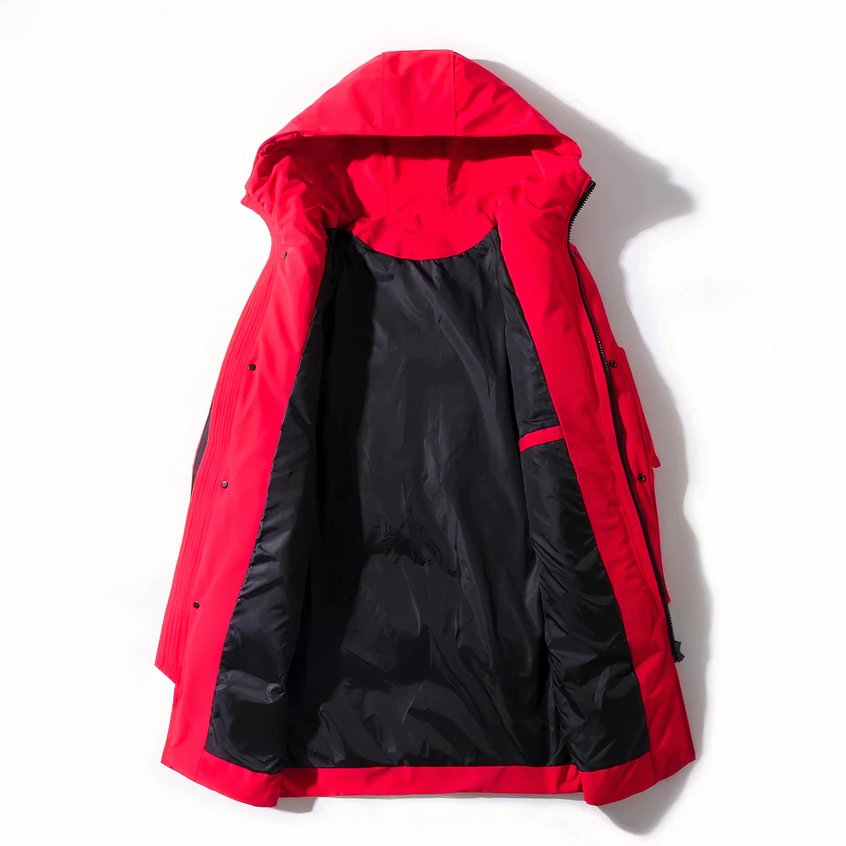 Dit rode donsjack voor heren is ontworpen met een halflang model dat effectieve bescherming biedt tegen de kou en er toch stijlvol uitziet. Het ontwerp biedt extra bedekking op de heupen en onderrug, zodat u optimaal beschermd bent tegen de elementen. Dit lichtgewicht maar goed geïsoleerde donsjack is perfect om de winter in stijl tegemoet te treden en warm te blijven, en is ideaal voor mannen die zowel comfort als verfijning willen.