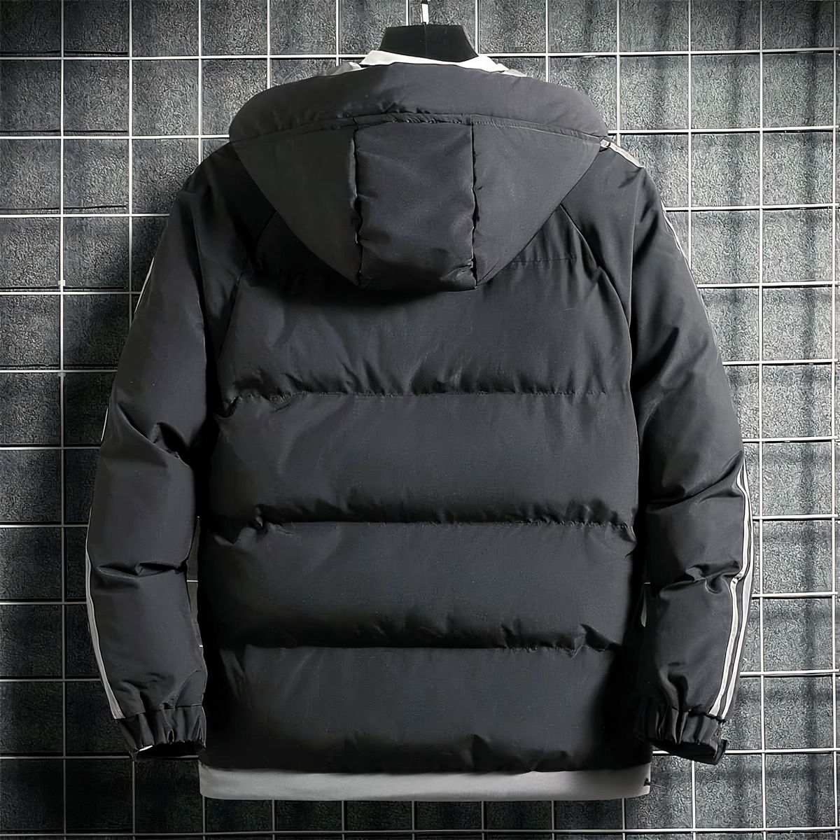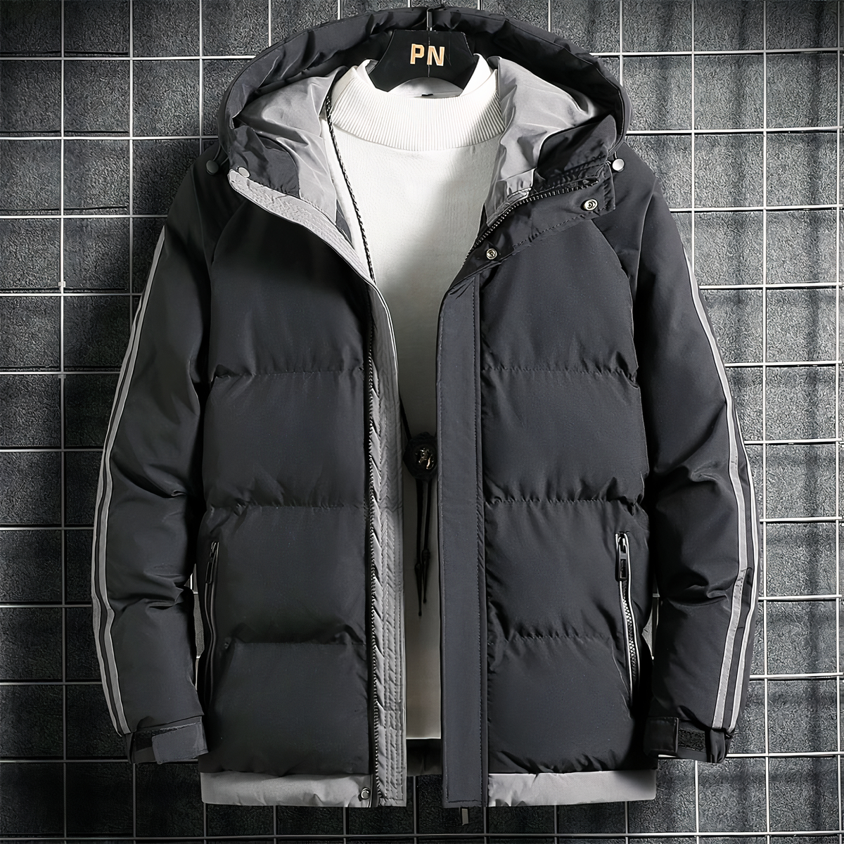 Dit warme, tweekleurige donsjack voor heren is gemaakt van hoogwaardige stoffen die u zelfs op de koudste dagen warm zullen houden. Het heeft een eigentijdse stijl dankzij de sobere, tijdloze kleuren. Deze lijnprint is perfect voor uw winteroutfit en is een geweldige manier om een vleugje originaliteit aan uw look toe te voegen en toch stijlvol te blijven.