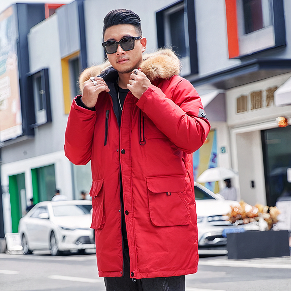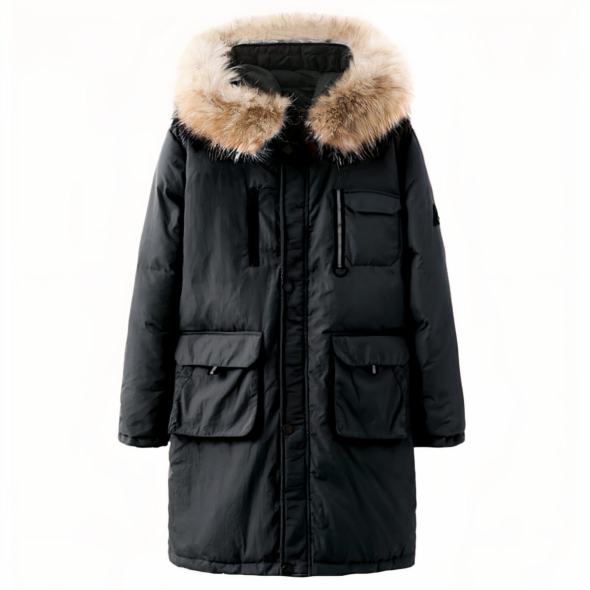 Deze halflange donsjas met capuchon en bont voor heren is perfect voor de winter en is niet alleen stijlvol, maar ook uiterst functioneel. Hij is waterdicht en biedt effectieve bescherming tegen regen en sneeuw, zodat u droog blijft, wat voor weer het ook is. Deze donsjas is uitgerust met een aantal praktische zakken en biedt voldoende ruimte om uw persoonlijke spullen op te bergen, terwijl hij er netjes blijft uitzien. Hij is comfortabel en mannelijk en is de ideale keuze voor wie op zoek is naar een jas die stijl, functionaliteit en bescherming tegen de elementen combineert.