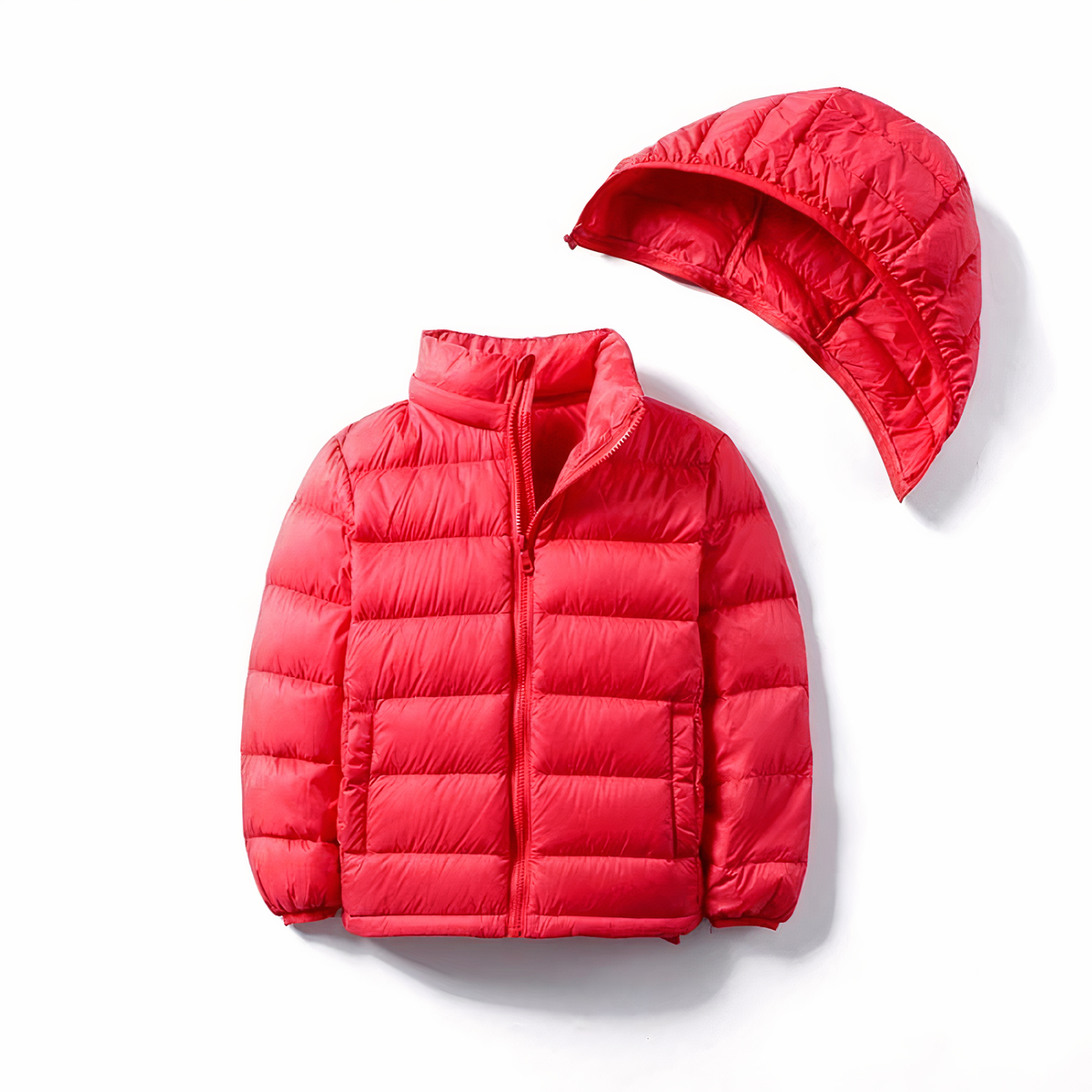 Lichtgewicht donsjack voor kinderen met afneembare capuchon