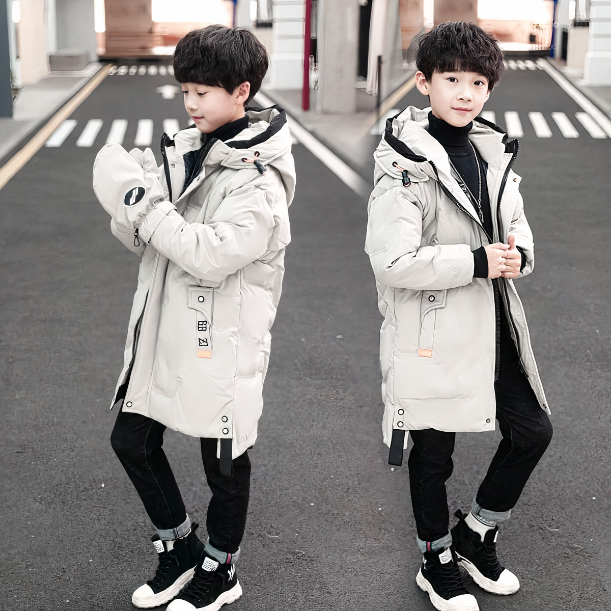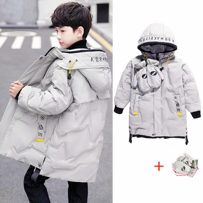Onze witte donsparka met capuchon voor jongens is een stijlvolle en functionele parka. Dankzij de wattering is hij zeer comfortabel om te dragen, terwijl de omslagkap uw jongen beschermt tegen de elementen. Dankzij de ritsen is hij gemakkelijk aan te trekken, terwijl de zijzakken handig zijn om kleine spullen in op te bergen. Deze jas is perfect voor koude winterdagen en zal zeker indruk maken!