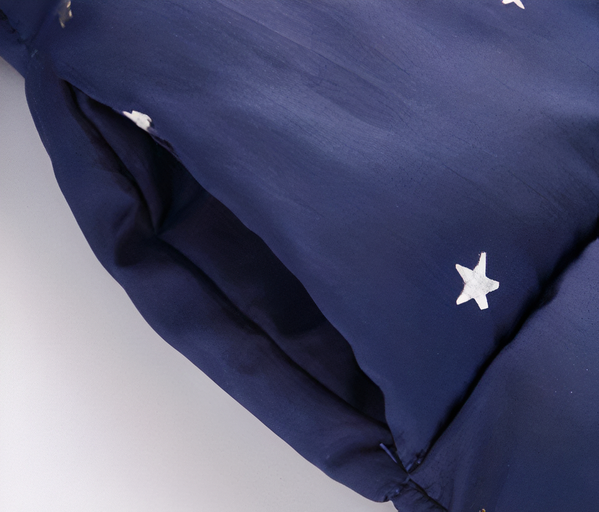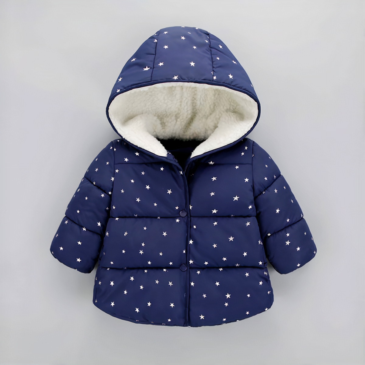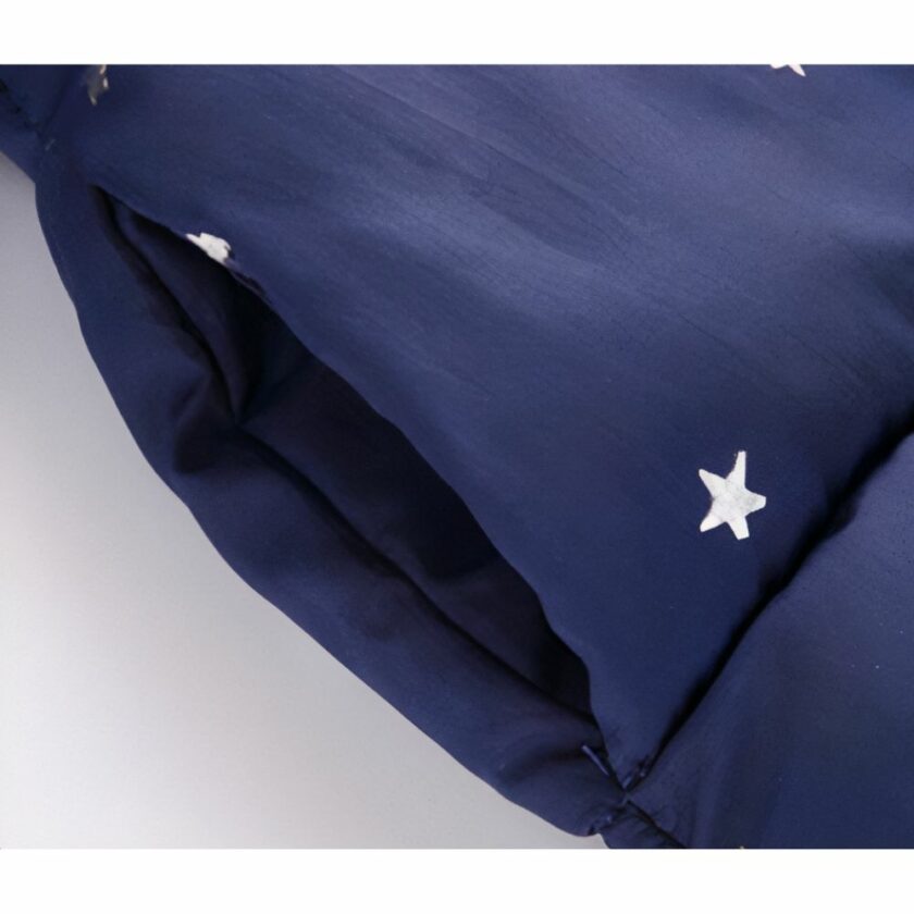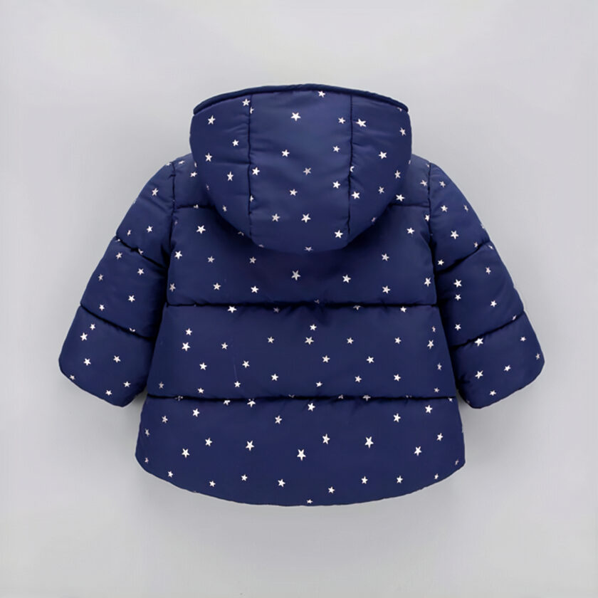 Deze warme marineblauwe donsjas met fleecevoering is de perfecte manier om uw winterlook compleet te maken. Deze jas voelt uiterst comfortabel en zacht aan, en de sterretjes zullen uw kind zeker bevallen. Deze donsjas is in verschillende kleuren verkrijgbaar op onze site.