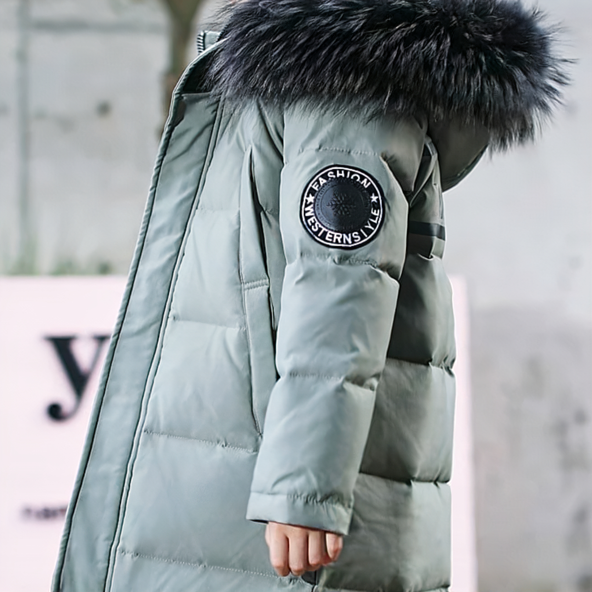 Donsjack met capuchon en echt bont voor tieners