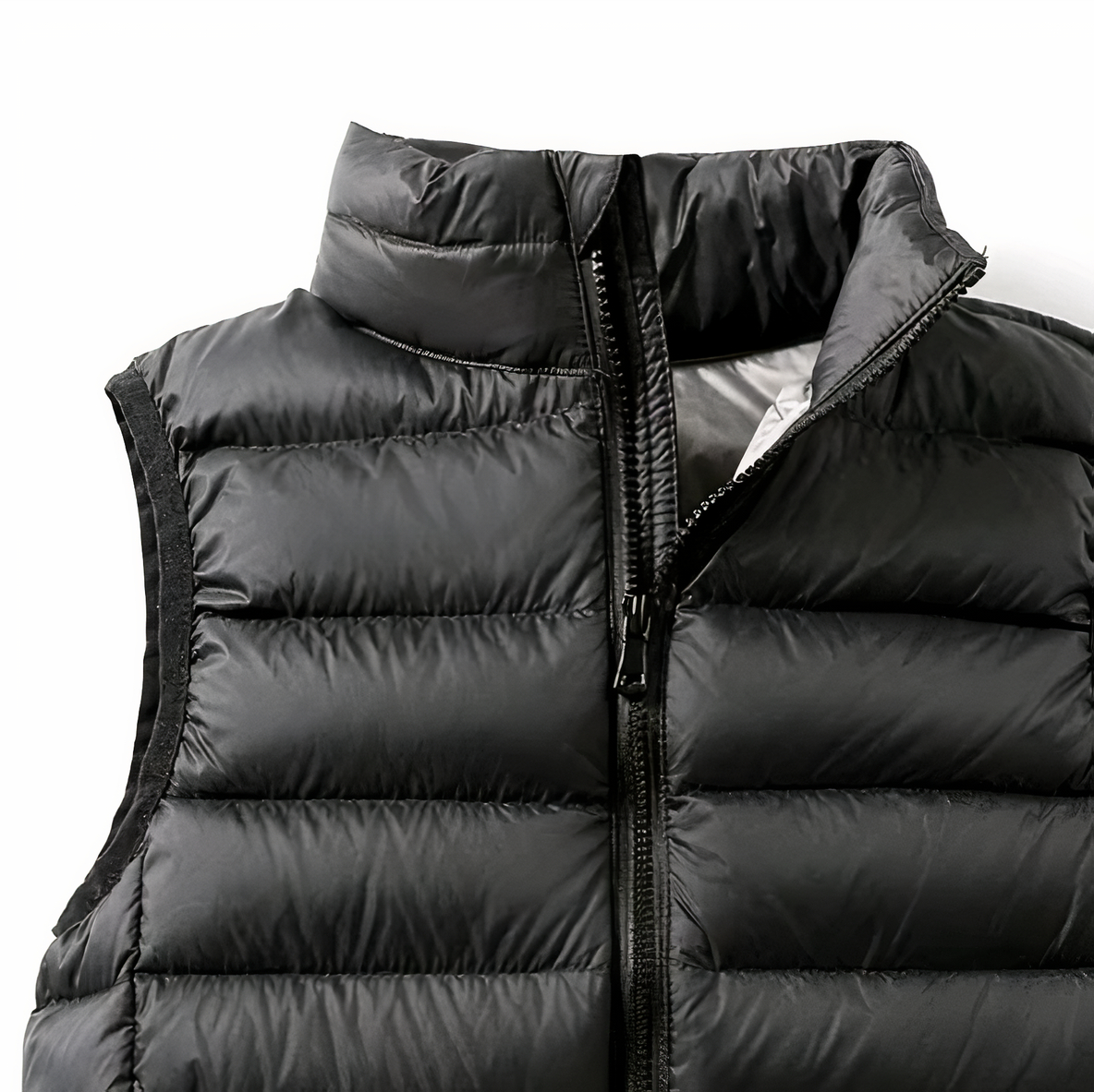Ontdek ons mouwloze donsjack voor tieners in waterafstotende stof voor maximaal comfort en stijl. Dit donsjack is sober en gemakkelijk te combineren met de rest van uw garderobe, en zal een goede bondgenoot zijn voor het winterseizoen. Het wordt verkocht met een hoesje, zodat u het eenvoudig in een reistas kunt stoppen.