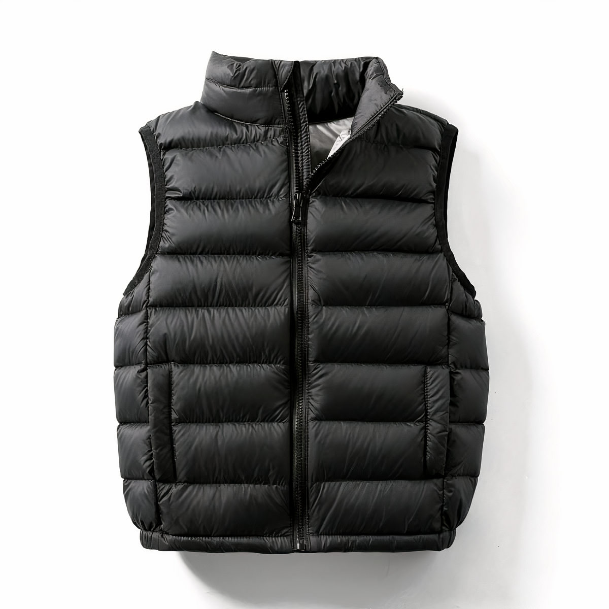 Dit mouwloze donsjack voor tieners is perfect voor de kille winterdagen. Het is gemaakt van dikke, warme stof voor een goede warmte-isolatie, maar is toch licht en comfortabel om te dragen. Het rechte model en de nette afwerking geven het een stijlvolle, geraffineerde look. Ritsen aan de voorkant maken het makkelijk te gebruiken, terwijl de twee zakken met rits een handige plek zijn om uw spullen in op te bergen.